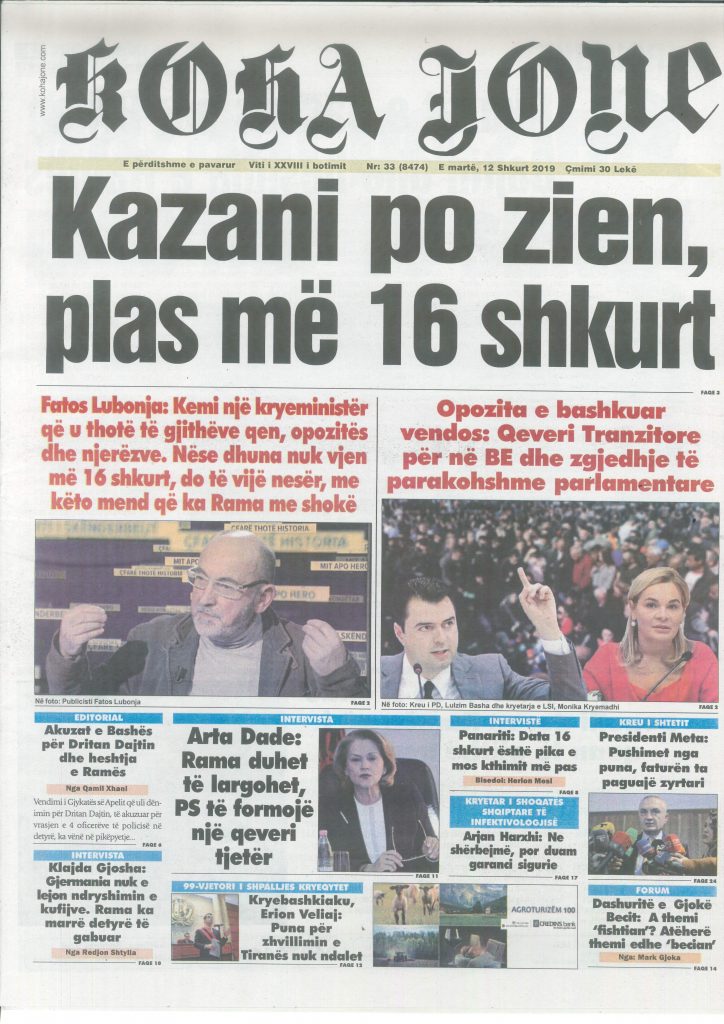 Këto tituj pasqyrojnë zhvillimet kryesore të 24 orëve të fundit në Shqipëri, Kosovë dhe rajon.