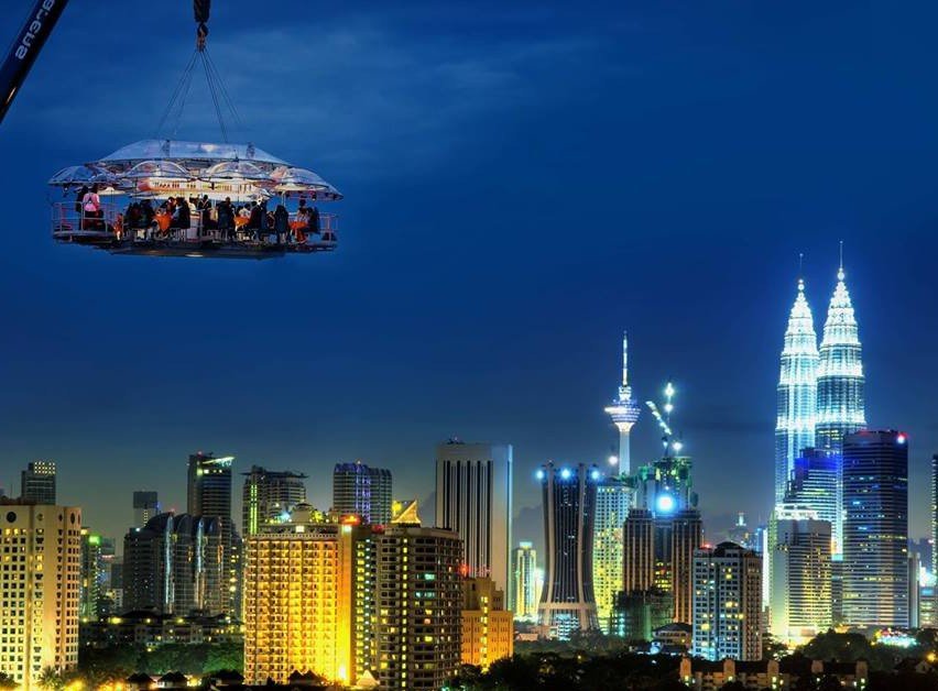Pasi kanë ardhur këtu, klientët, kuzhinierët dhe stafi i kuzhinës ngrihen në lartësinë e 40 metrave në qiell, nga një vinç.